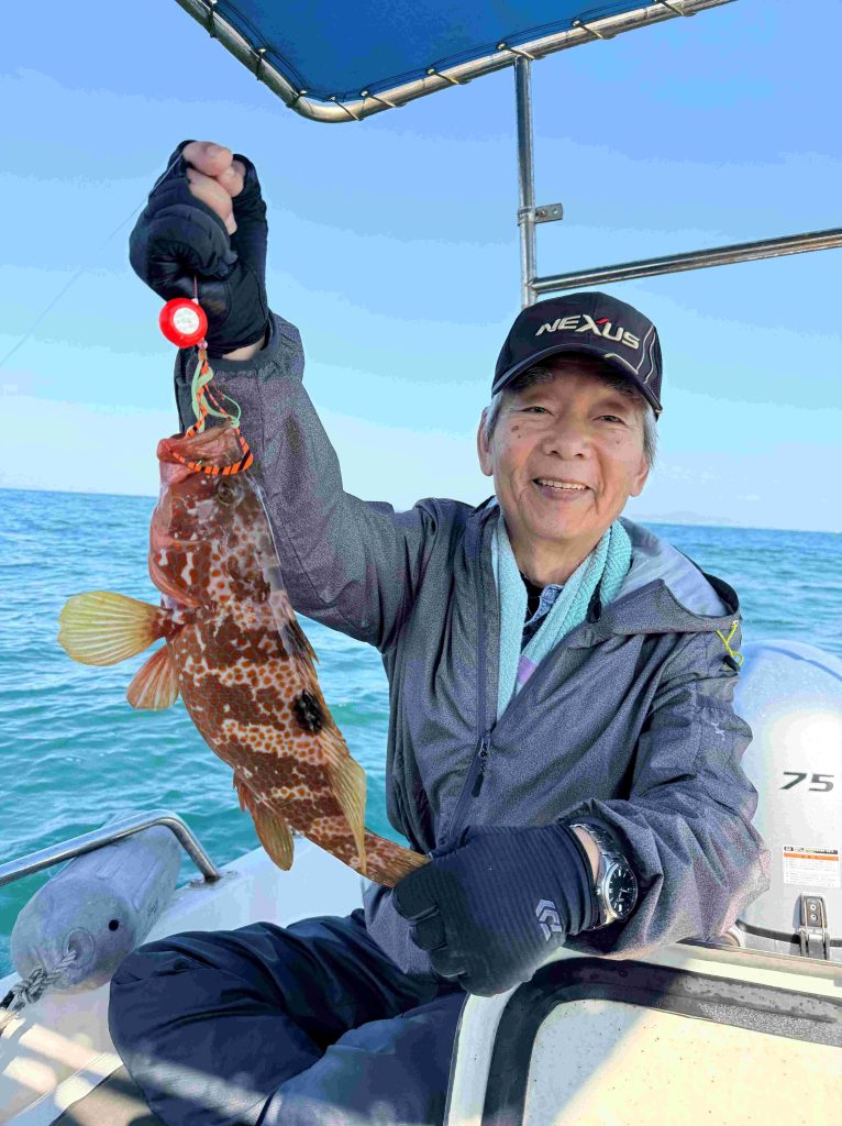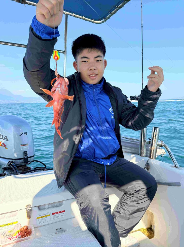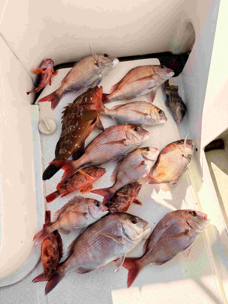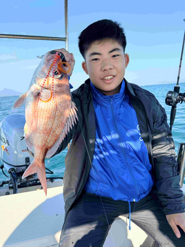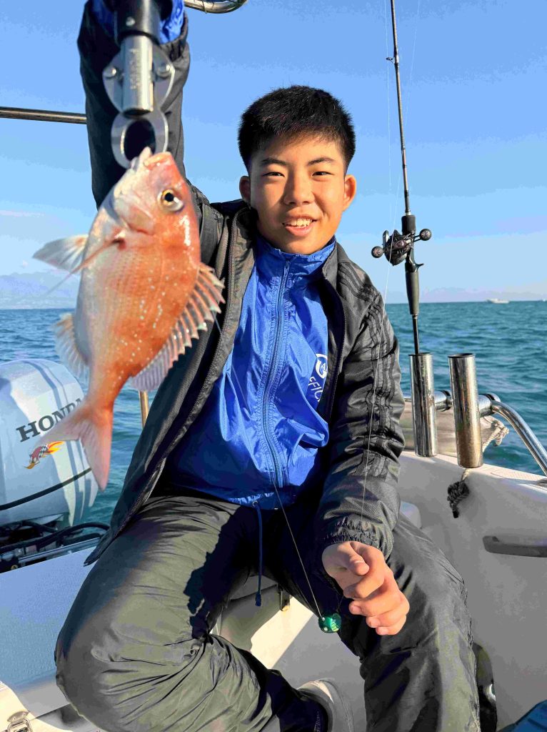 マダイを立て続けにキャッチ、アコウはナイスサイズだ! レオ君も、