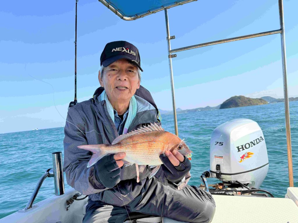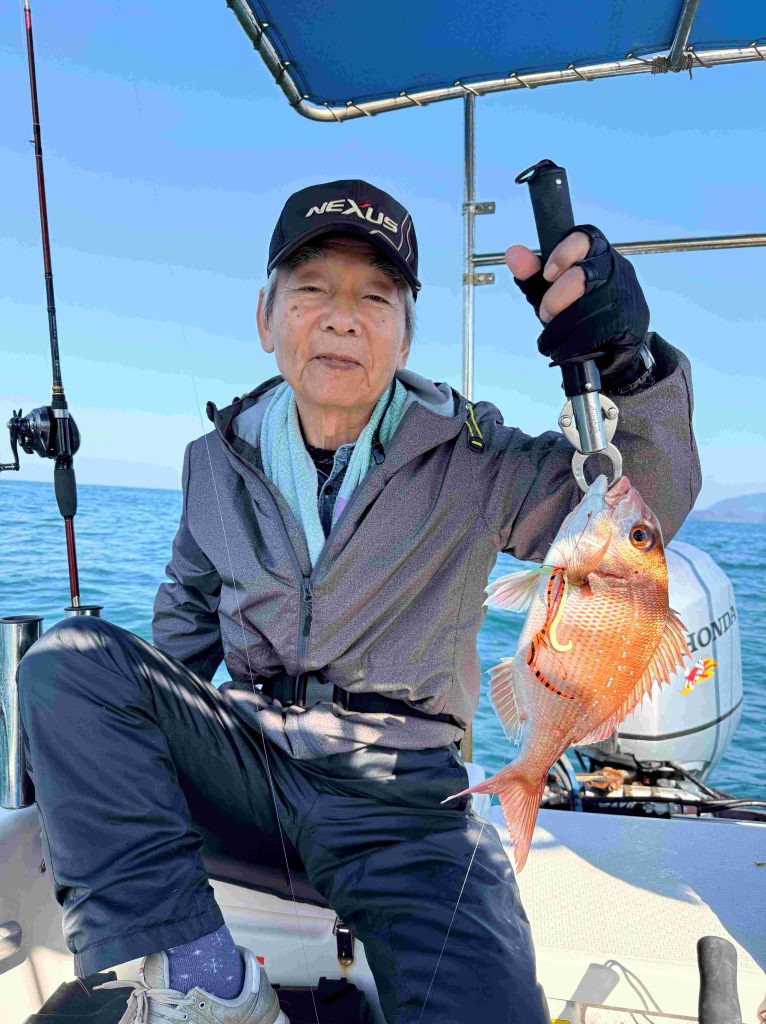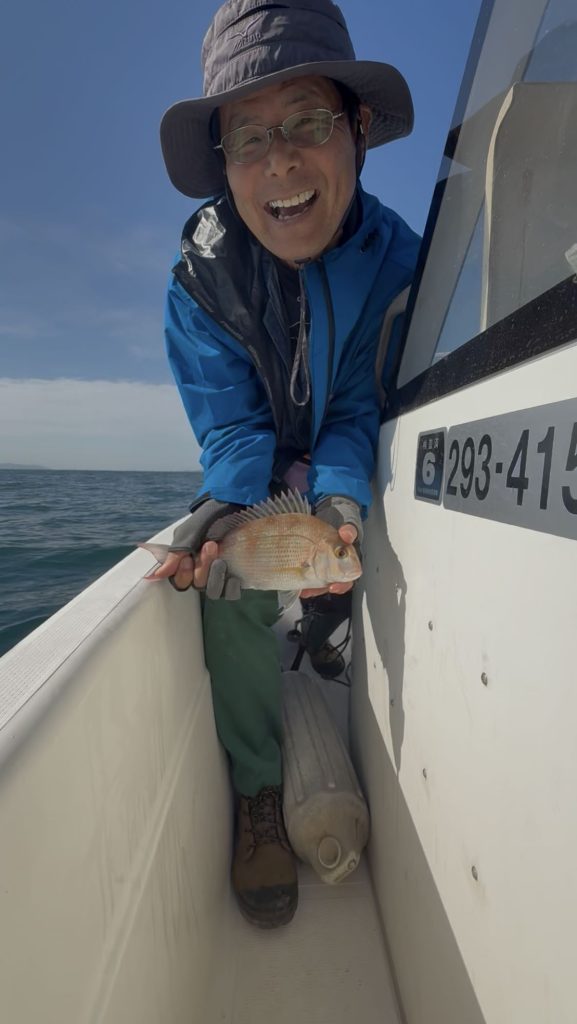 今日2匹目のマダイをキャッチ、これで更に釣りが好きになってくれると”おじさん”は嬉しい。