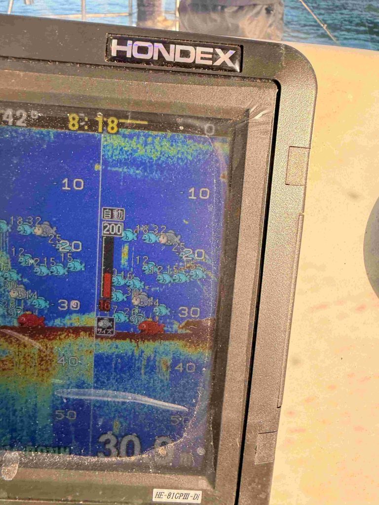 この頃の魚探の映像がコレ、アラームも鳴りっぱなしだった!