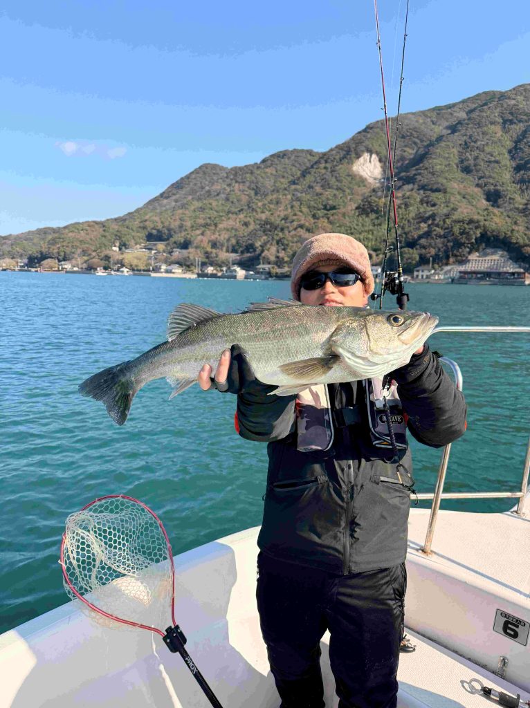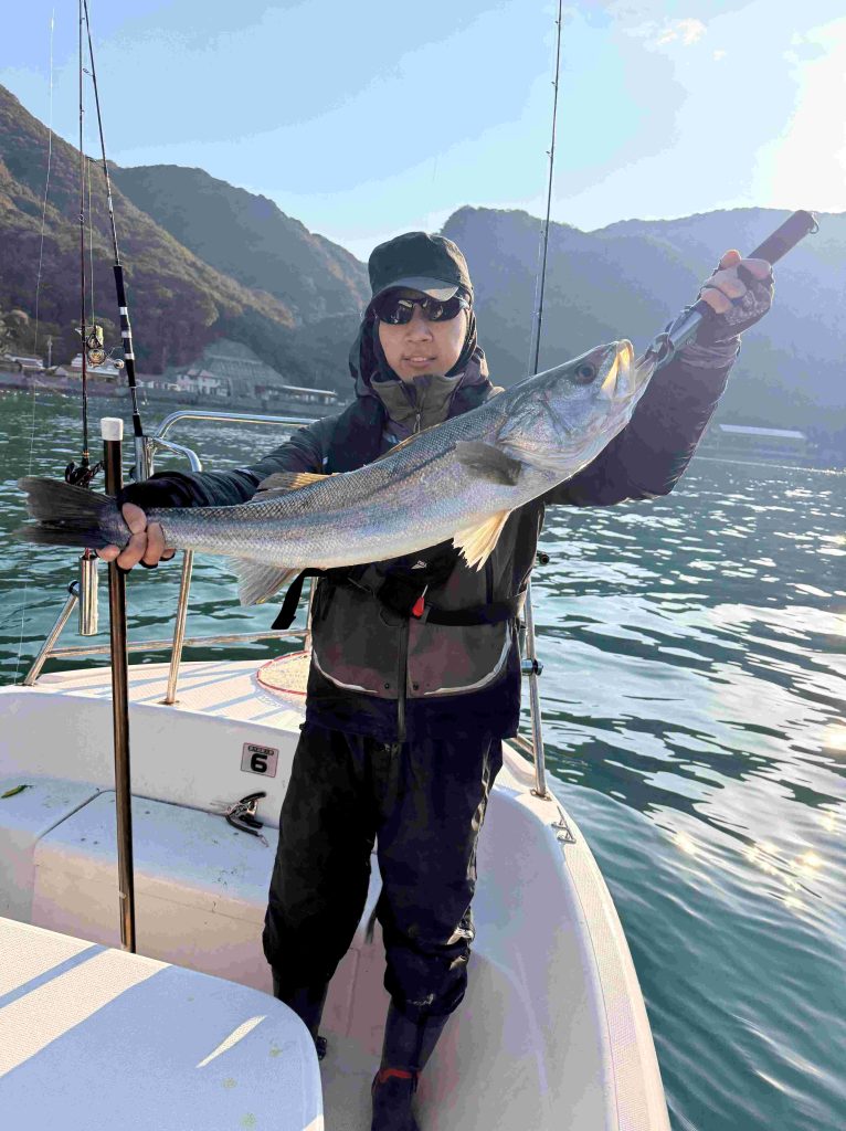 上がって来たのは良型のシーバスだ。