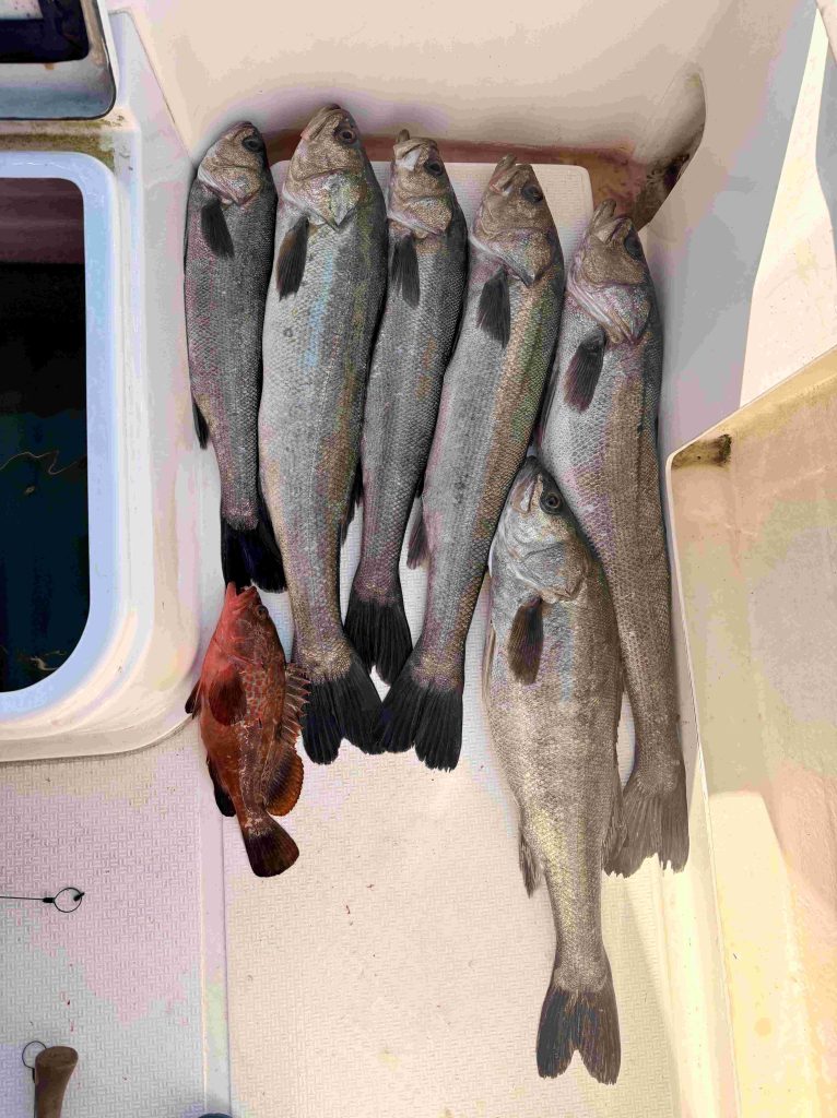 ガラカブは全てリリースし、シーバス6匹とアコウをキープし終了した。 キープしたサイズは大きい方から83、81、78、70,68、60センチ。アコウは33センチだった。